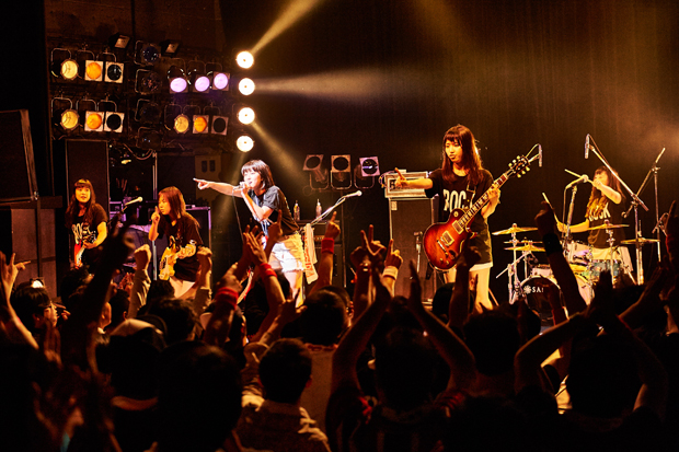 オープングMCではメンバー紹介とともにベースしのぶが「本日はご来場頂きありがとうございます!皆さんまだまだ盛り上がって行けますか?」と会場を沸かせた。