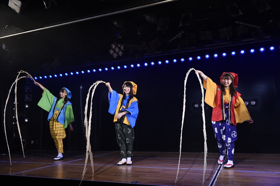 セットリストの合間には、落語と同じ伝統芸能の「南京玉簾(なんきんたますだれ)」も取り入れられ、小笠原茉由と後藤萌咲とドラフト生3名が「手が擦り切れるほど猛特訓した」という、お手前を披露。多少もたつきながらも、東京タワーや鯛、打ち上げ花火などを再現し、会場からは大きな拍手が沸き起こった。