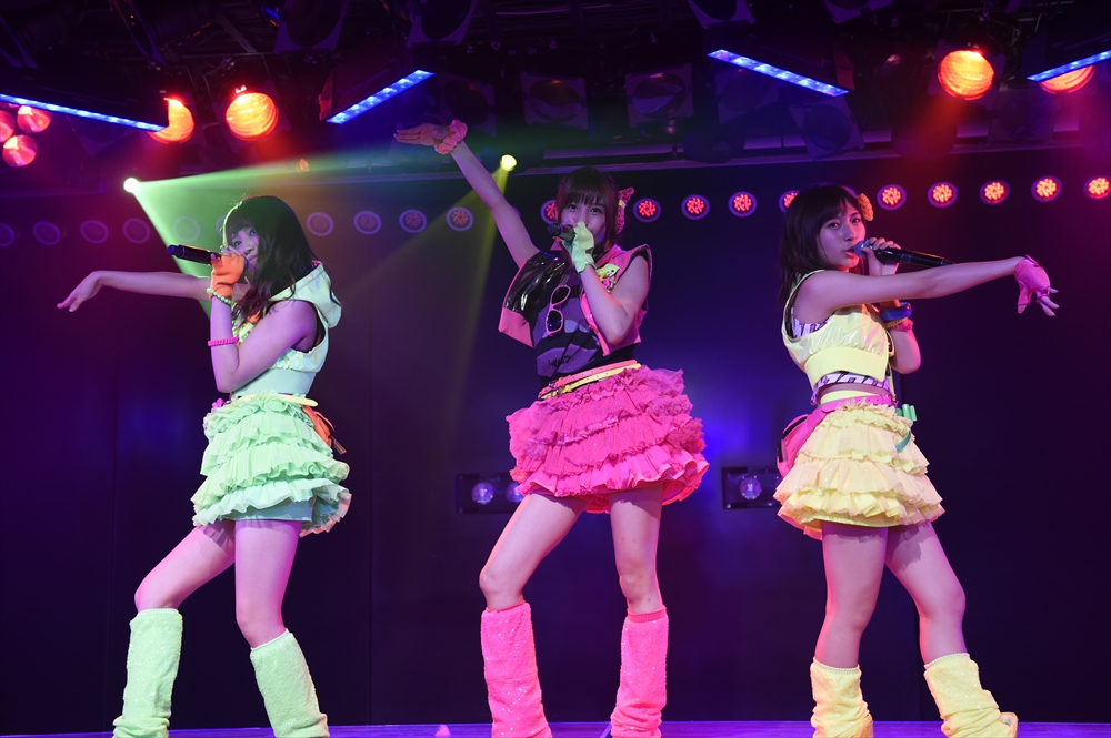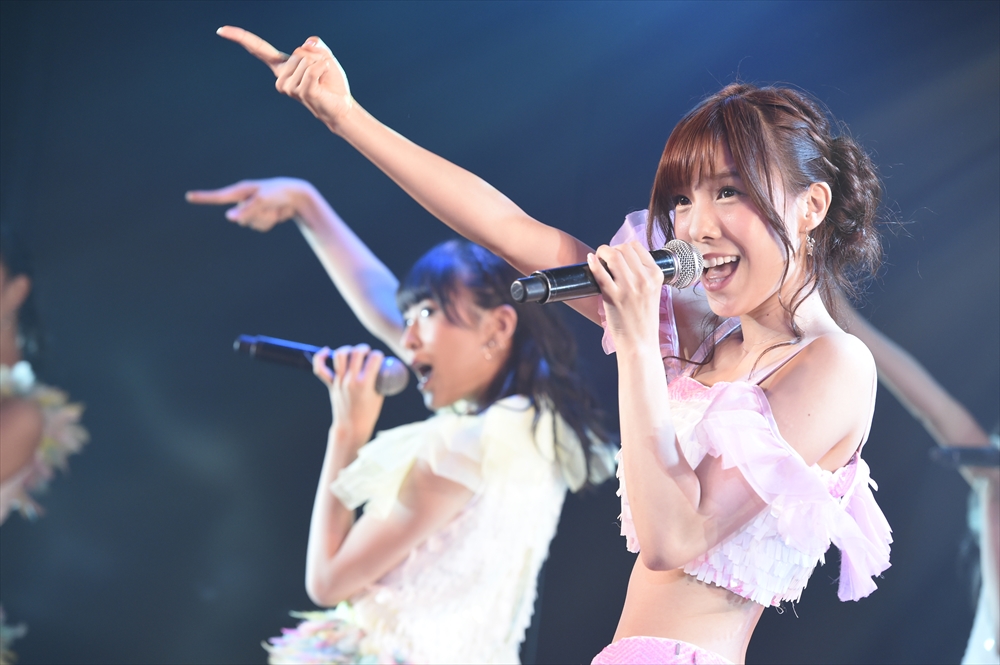テル監督が「攻撃的」と表現する本公演。アンコールも含め22曲だが、その中でユニット曲はわずか2曲のみで、メンバーもほとんどステージに出突っ張り。さらにダンスが激しいシングル曲も多数ライナップされていて、まだ前半の段階で、メンバーは全員、汗びっしょり。大島涼花が「他にない、めちゃくちゃ汗をかく公演」と語るほど。