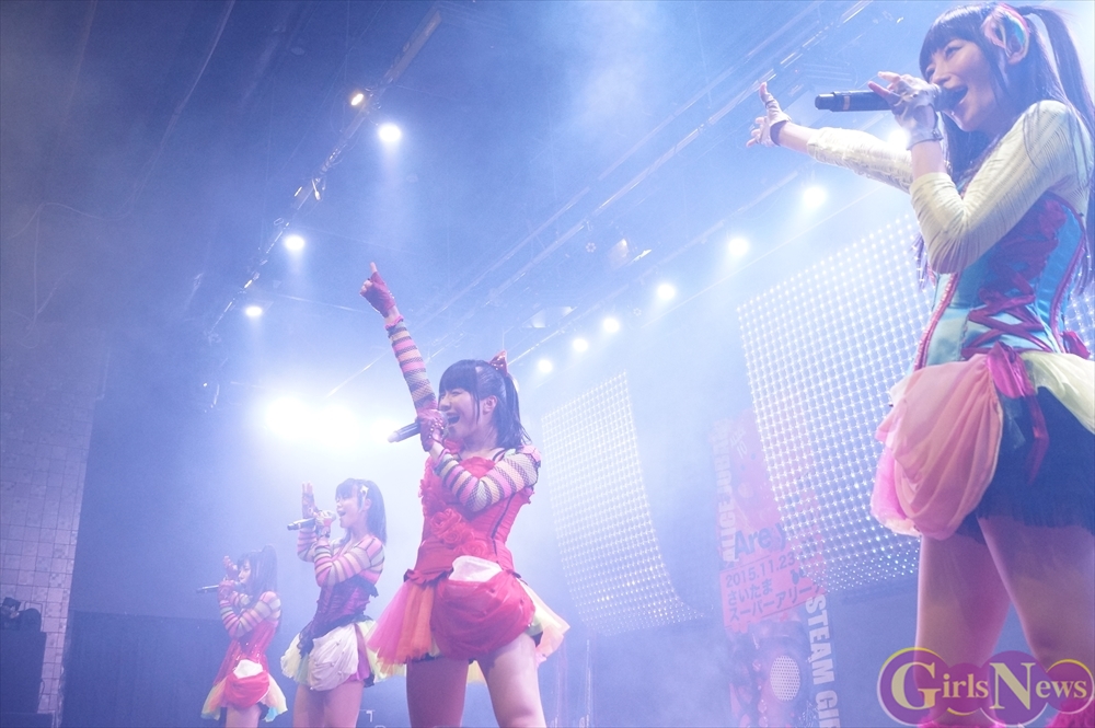 梅こうめさんと小島夕佳さんはスチームガールズとして、北村真姫さんはアーマーガールズとしてもステージを行い、ファンの声援を浴びていた。