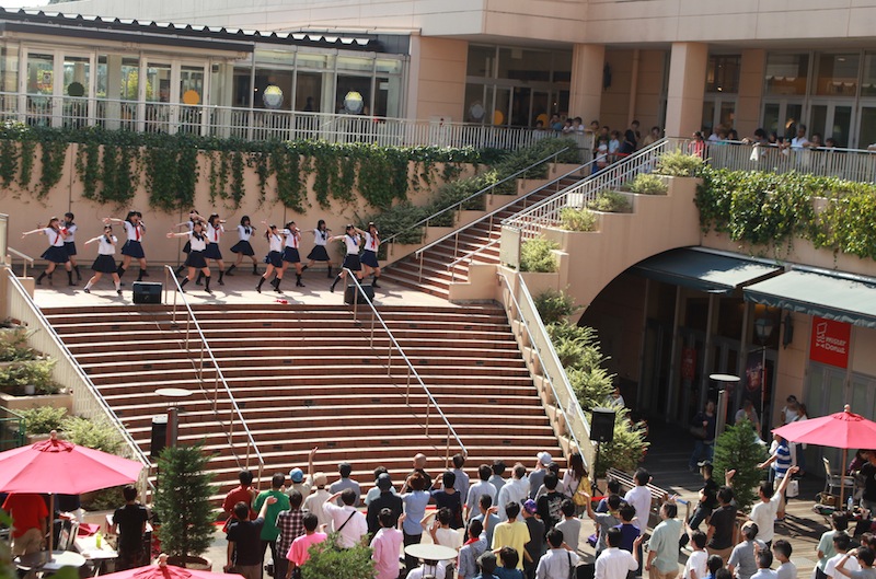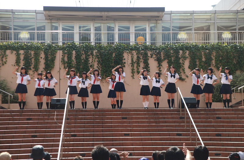 キャンペーン初日となったトレッサ横浜の南棟1Fセンターガーデンの特設ステージでは、なんとセーラー服とNEWシングル新衣装で2回公演で開催!