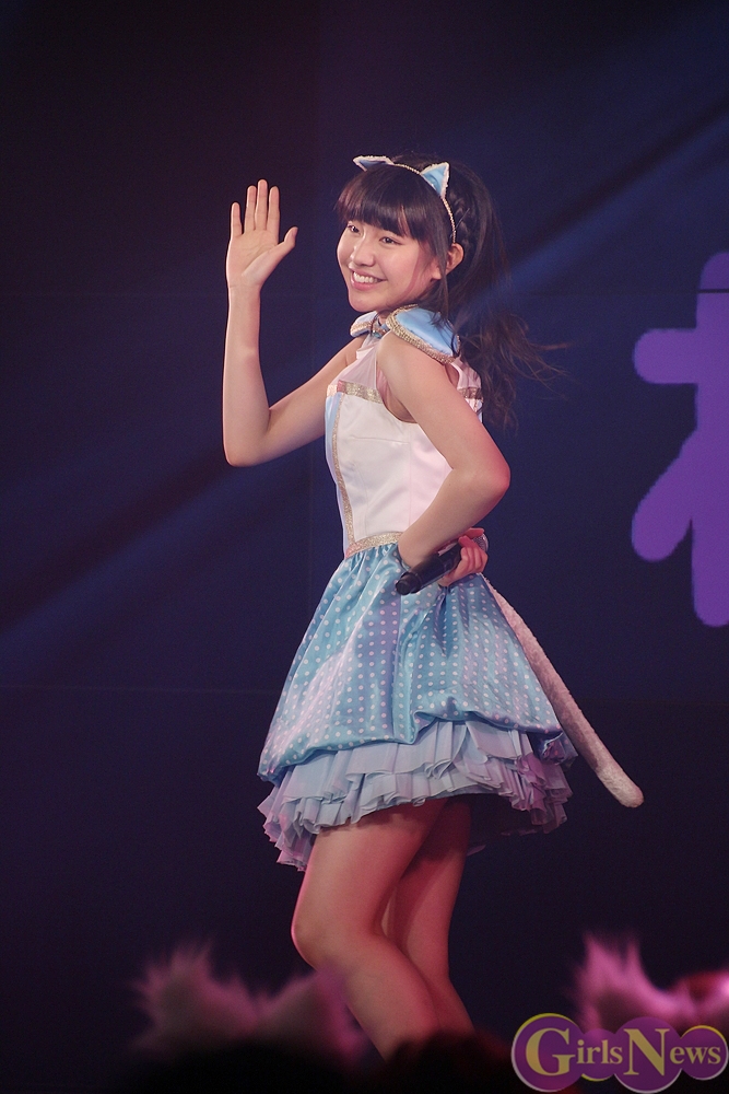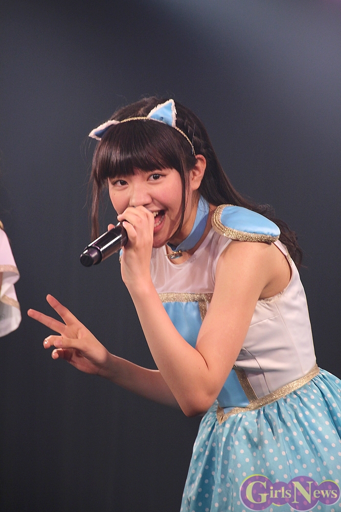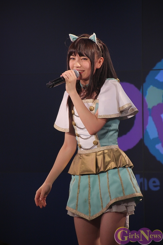 まず、公演を迎えた今の気持ちについて「夏の新人公演で一位を獲って定期公演をすることが私たちの目標でした。いざ始まるとなるとドキドキしてますが、この日のために練習も頑張ってきたので、あとはお客さんと一緒に楽しみたいです。」そして、今日の見どころについて「やっぱり新曲ですね!初披露なのでドキドキです。」と弾む声で答えた。