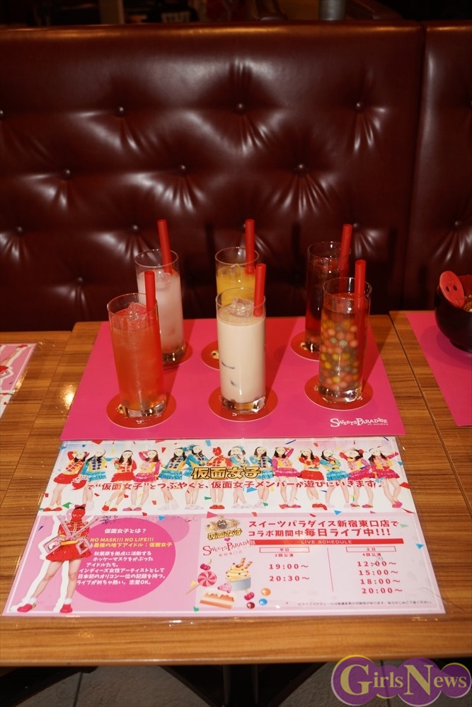 仮面女子が「スイーツパラダイス」新宿東口店でのステージでは、ライブ撮影がOKとなっているそうなので期間中駆けつけてみよう。出演するアイドルは日替わりで異なるため、詳細は特設サイトをチェックして欲しい。