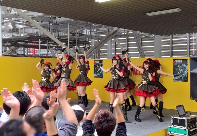 戦闘部隊をテーマにした今回のタイアップ作品をイメージしたカーキ色の戦闘服のような新衣装でのキャンペーンはこれが初日な上、3連休の初日ということもあり、多くの観客が会場に詰めかける中、一部では人気曲の「ニーハイ・エゴイスト」「Bitter Sweet」「S・M・L☆」「Embrace Blade」を、二部では「恋のWizard百年戦争」「ちいさなまほう~Small Magic~」「SURVIVE!!」「Embrace Blade」を披露。