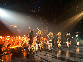 場内に無数の大きな輪が、誕生。オレンジのサイリウムを振り、みんなでMIXしながら炸裂したい感情を発火させた、カバーナンバーの『Don`t Say Lazy』。激しく唸る楽曲の上、9人がパワフルな歌をガンガンにぶつけ観客たちを挑発したメジャーデビュー曲となる『OverDrive』。女豹のように挑発してゆくメンバーたちの濃厚に攻めゆくステージングへ戦いを挑むよう、客席をフルに使い騒ぎ続けた『絶対加速少女C』。『Cinderella Call』が連れ出した、一緒に夢見ることのワクワクとした嬉しさ。