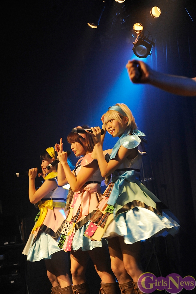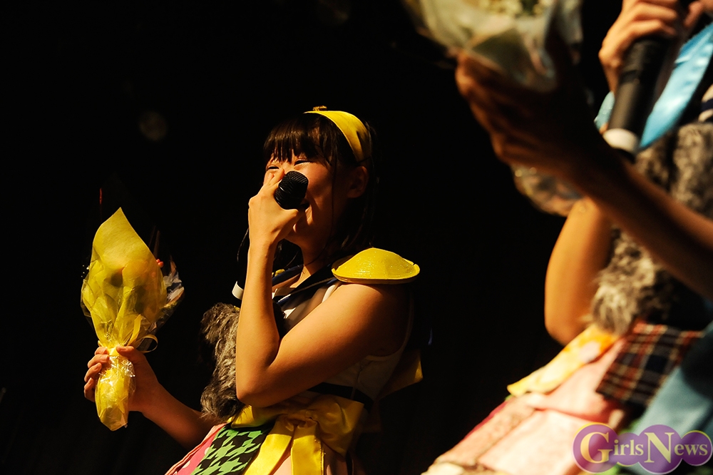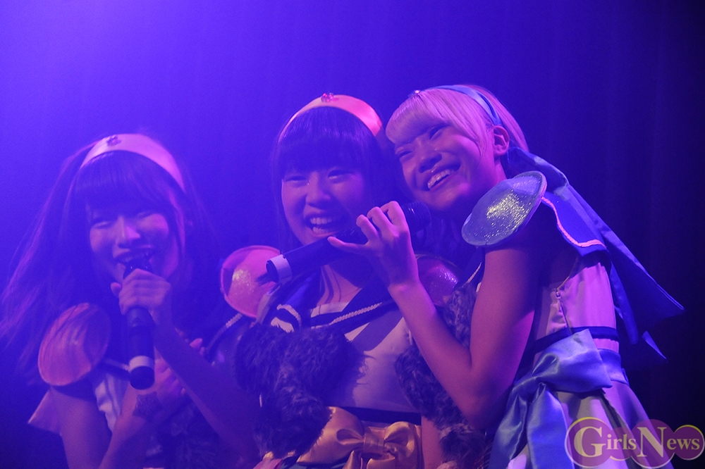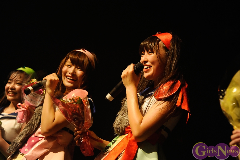 佐々木えまさんは「私はずっとアイドルが好きで、だけど人前に立つのは嫌いで、恥ずかしかったんですけど、声を掛けてもらってやろうってなりました。新メンバーで入れさせてもらって自分だけファンがいなかったり、センターなのにキャラもなくて不安なことがたくさんあるんですけど、物販に来てくれる人たちがかなり支えになってます。学校行って忙しかったりだとか、熱が出てしまってみんなに迷惑かけてしまうこともあるかもしれないけど、これからも宜しくお願い致します。」