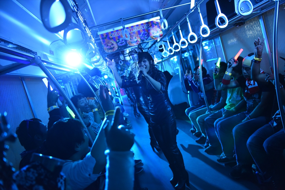 まず、10月31日の『アイドルトレイン』は、池袋から練馬まで、電車の中でアイドルがライブを行うという画期的なイベント。ステージは車内通路、観客は左右の長椅子に座って観覧するという全席最前列状態だ。
