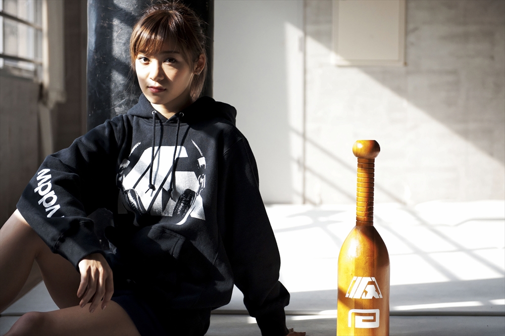 今回のコラボテーマは「アプガ×EDM」とし、アプガのEDMスタイルをrvddwのフィルターを通し表現したTシャツやフーディー、ファイトショーツ、「コシティー」とアイテムを多展開する。