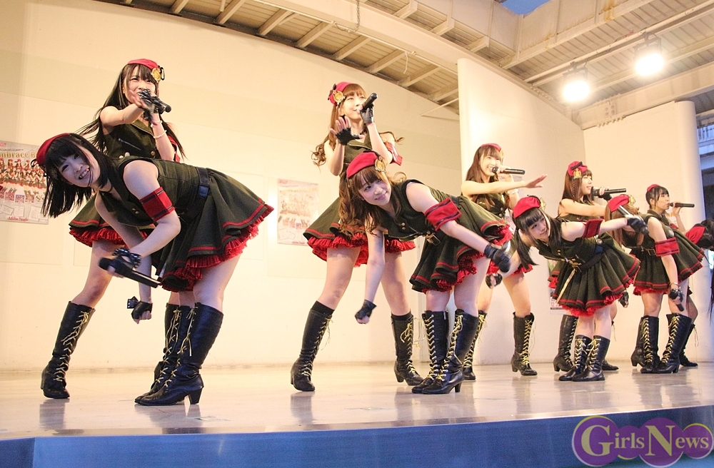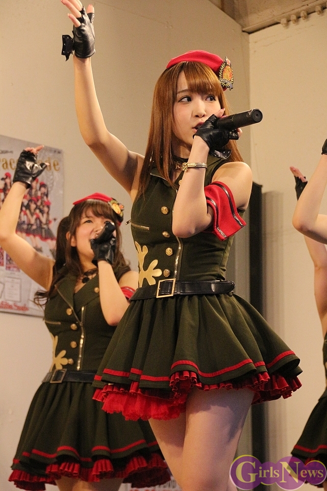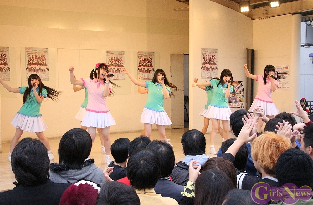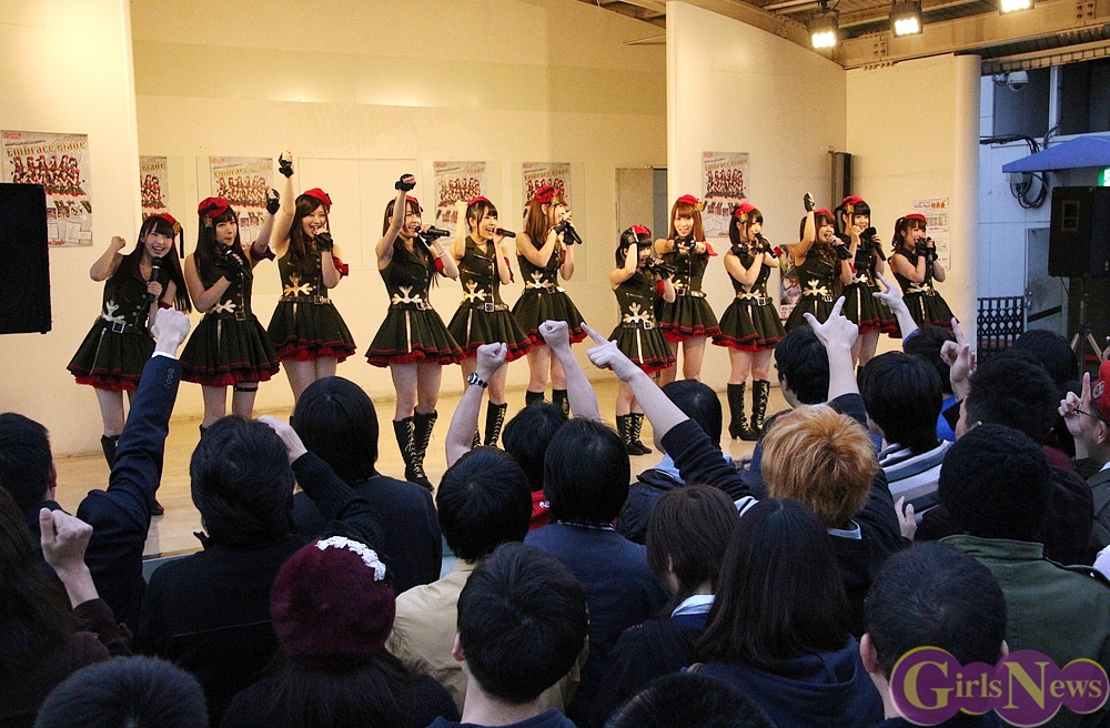先ごろのアフィリア・サーガ主催ライブで、メンバーのルイズ、ユカフィン、アヤミの3人が卒業することを表明してた。現在の12名が揃ってキャンペーンに出演するのは、この日と翌日に同会場で行われるイベントを残すのみということもあって、多くの先輩(アフィリア・サーガのファン)が訪れて会場は盛り上がり、ミニライブ後の特典会も列が絶えないほどの盛況ぶりだった。