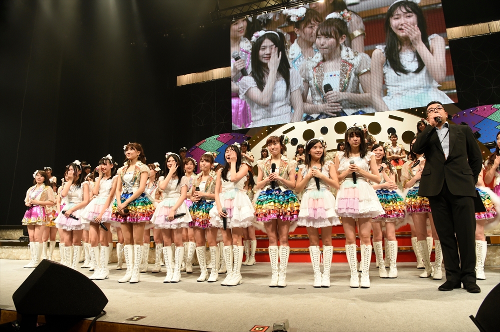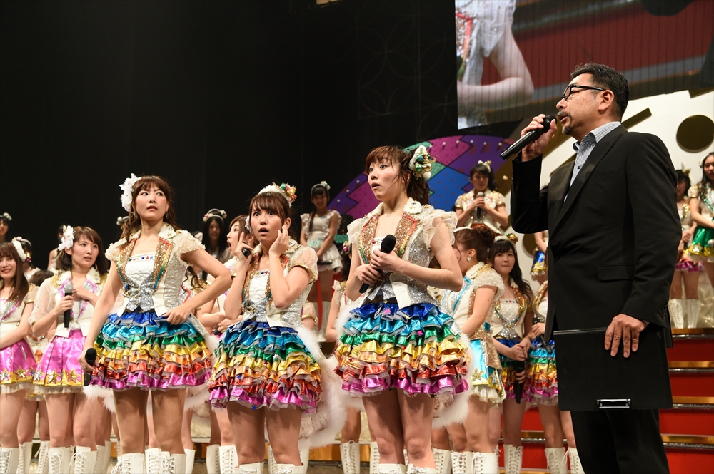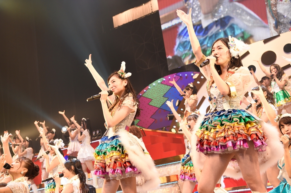 また、昼公演では松村香織のソロデビュー曲『マツムラブ!』のイントロが流れると、新聞紙で作った衣装に身を包んだ珠理奈がステージに登場。「マツムラブ!」のフレーズを「マツイラブ!」ともじりながら、松村と⼀緒にコミカルに歌い上げました。