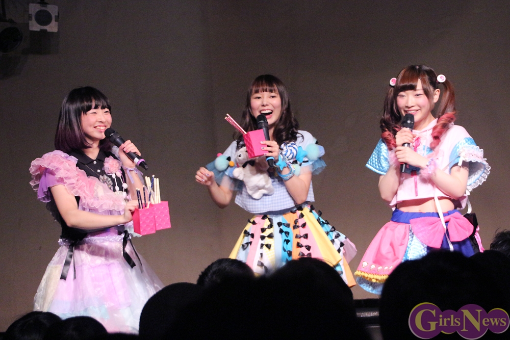 ゆり「緊張でお腹が痛くなって大変でした。でも、仲間がいるってすごく安心できるし、この3人なら本当に最強だと思う。客席にいっぱいお客さんがいて、女の子も沢山いたのが嬉しい。小さい子からおじいちゃん、おばあちゃんまでいろいろな人のユートピアみたいなライブを作っていけるようにしたい。」
