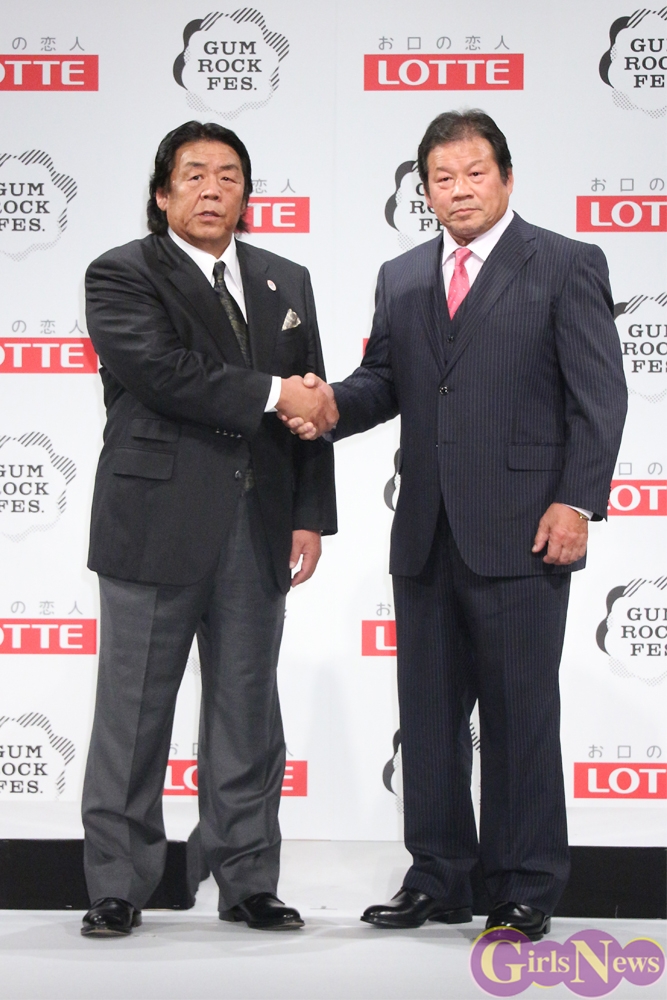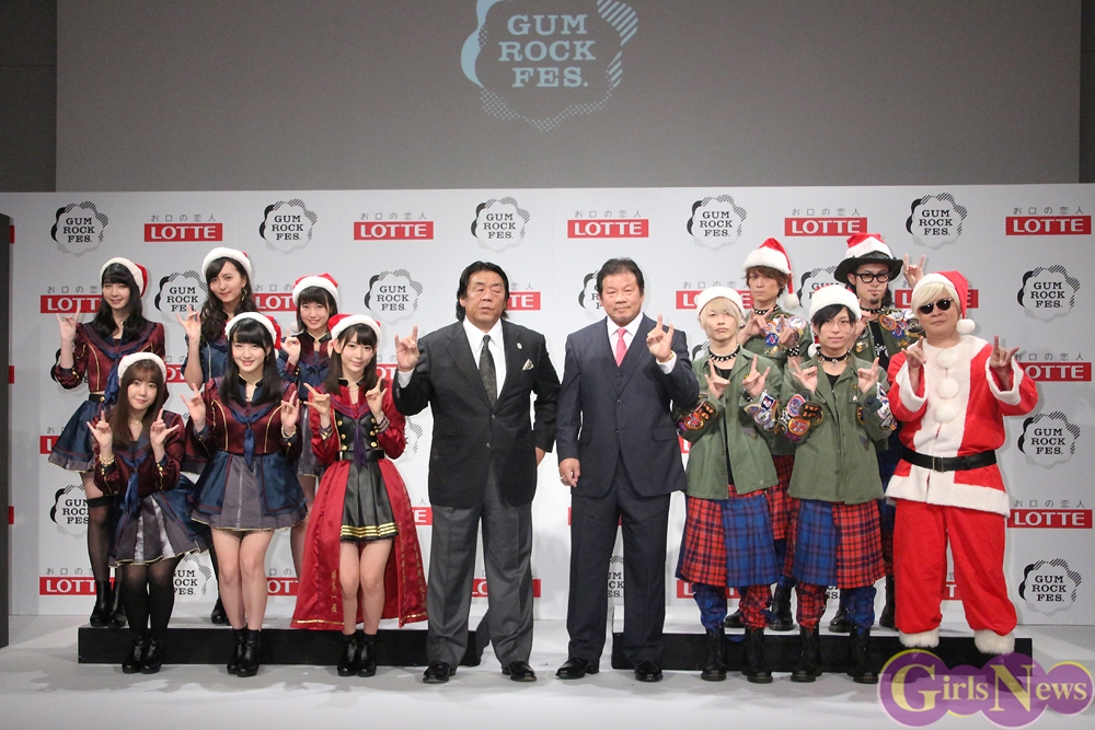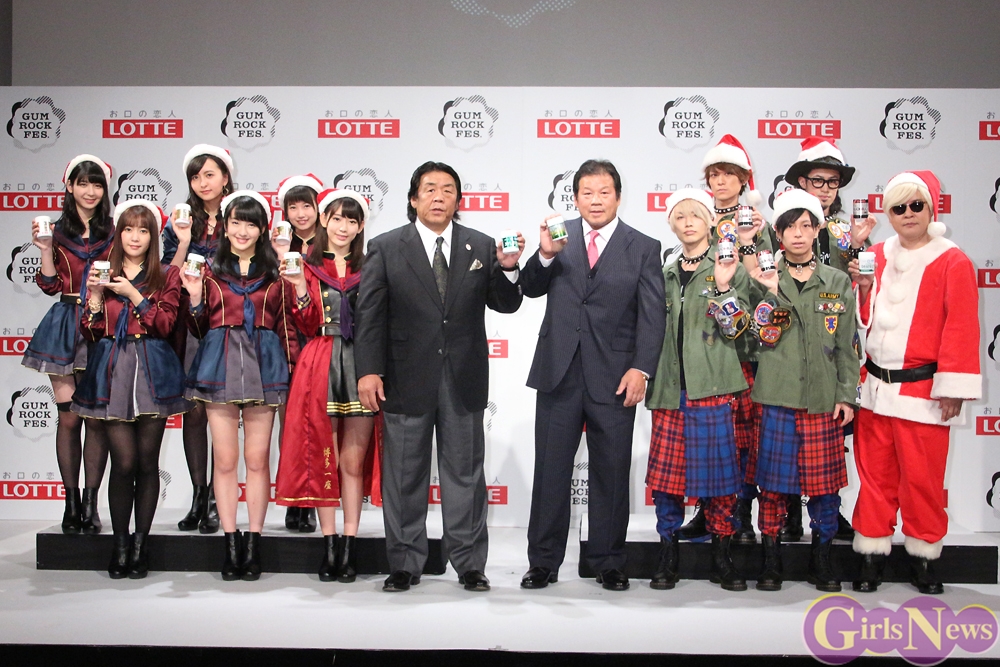 12月9日、音楽と格闘技の対決コラボフェス『GUM ROCK FES.In 日本武道館』の開催発表記者会見が、恵比寿ガーデンルームで行われ、メインイベントとして対決するプロレスラーの長州力と藤波辰爾や、乃木坂46と“アイドル対決”を行うHKT48から宮脇咲良、多田愛佳、田島芽瑠、朝長美桜、松岡菜摘、森保まどか、が登壇した。