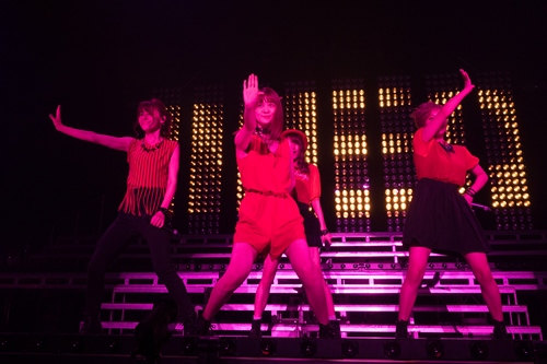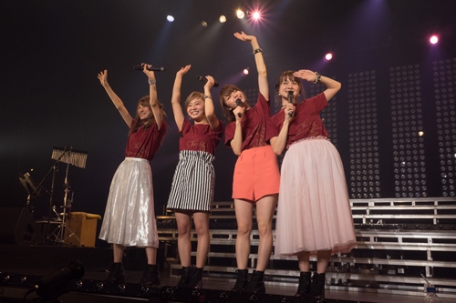 終盤は、『さぁ来い!ハピネス!』『全力バンザーイ!My Glory!』など、彼女たちのライブ盛り上げ“鉄板”曲で場内をわかせ、メロディアスなナンバー『愛しさを束ねて』で本編を締めくくった。