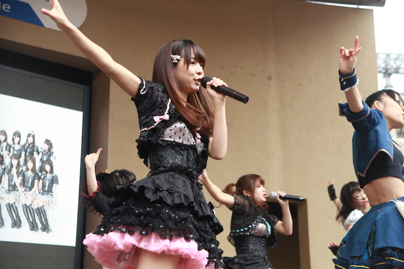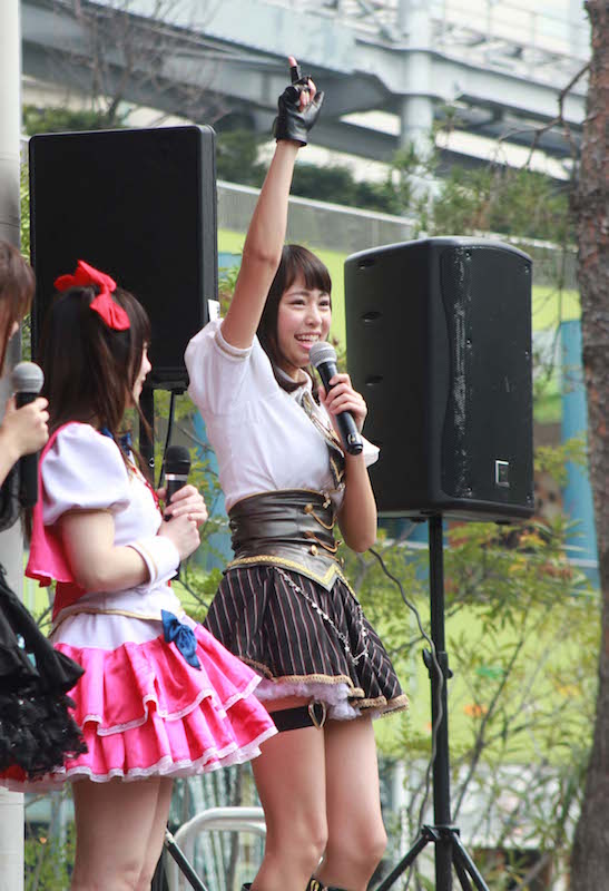 ラブ「きょうが初披露だったんですが、ロックでハードな曲をいただいて振付もがっつりなんですが、練習時間が短くて大変でした。これからのライブでも盛り上がる曲になると思います」