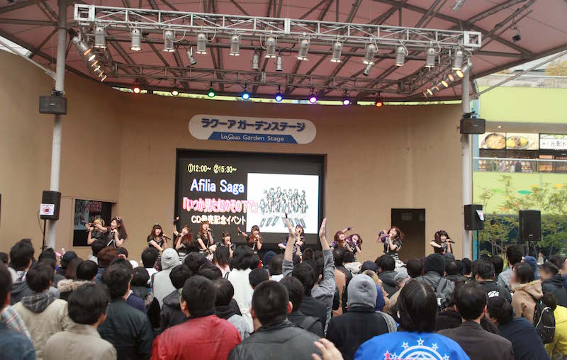アフィリア・サーガの新曲『いつか見た虹のその下で』の9日間連続キャンペーンが5日、東京ドーム隣のラクーアガーデンステージで最終日を迎えた。グループ卒業を控えたアフィリア・サーガの委員長(リーダー)・ルイズさんにとっては、最後のキャンペーンであり、新メンバーカナ、カオリ、ユミも加わったフルメンバー参加によるイベントとあって、多くの先輩(ファン)が会場に訪れてライブを盛り上げ、特典会では長い列を成して卒業間近のルイズさんと過ごす時間を惜しんでいた。