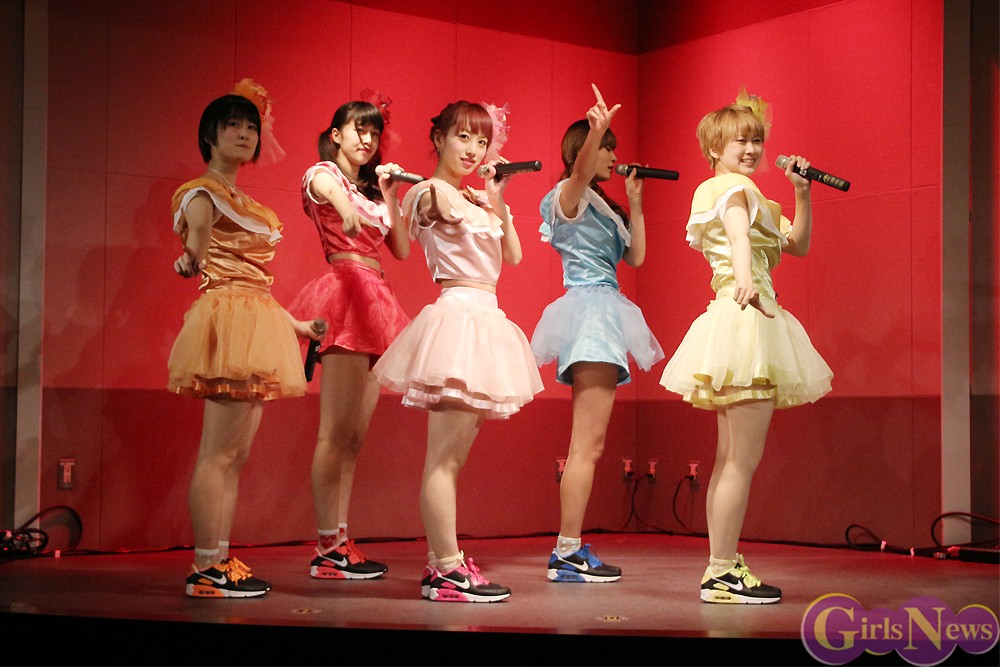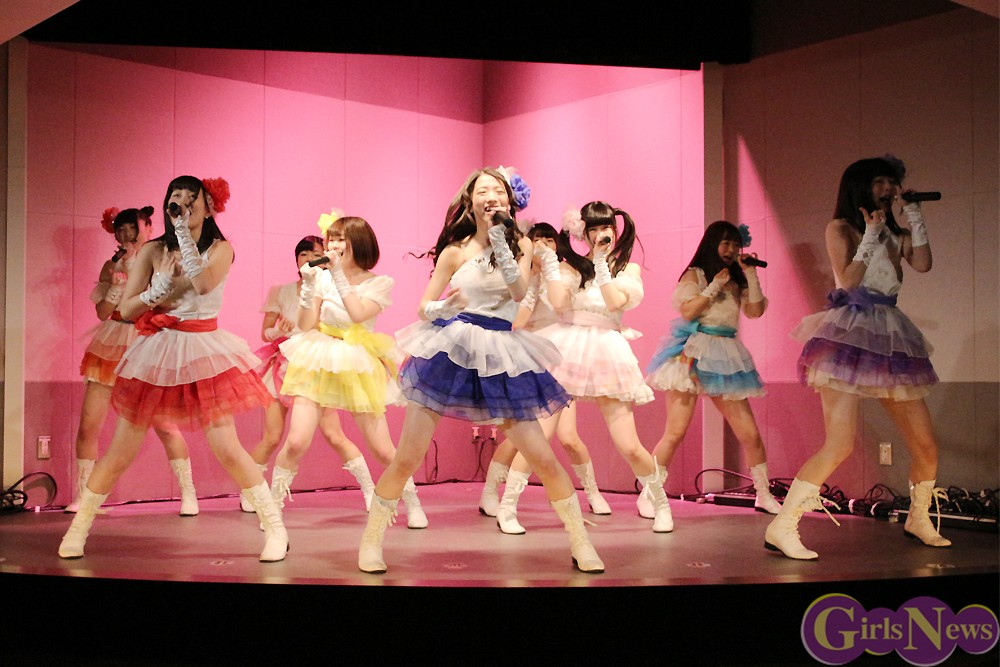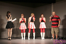 ファンを前にした普段のライブと違って、業界関係者に囲まれたステージに緊張したアイドルたちであったが、司会を務めたクロちゃんと、ユカフィンさん(アフィリア・サーガ)に優しくリードされながらパフォーマンスを披露した。
