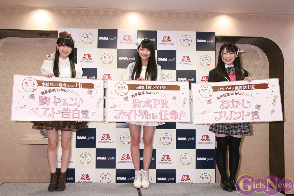 同企画は、有名人とのコミュニケーションアプリ「DMM.yell」において、森永製菓の写真でオリジナルパッケージが作れる「おかしプリント」の公式PRアイドルを決めるコンテストで、ファンの応援による”yell数”を最も多く獲得した渡邉幸愛さんが選ばれたほか、”おかしプリント賞”におやゆびプリンセスの宮腰愛美さん、”胸キュン♪ベスト告白賞”にLovelys!!!!の八木沙季さんが選出された。