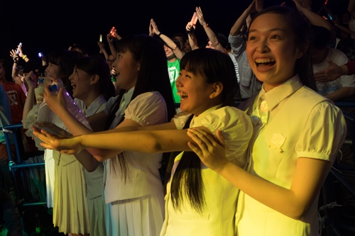 そして最後は、アップアップガールズ(仮)が 4 月 5 日にリリースするニューシングル『パーリーピーポーエイリアン』を、2組が一体となって 13人でパフォーマンス。アプガの“クレイジー”な世界に引きずり込まれたアイドルネッサンスたち。会場も一体となって“エイリアーン!”の大熱唱。大フィーバーのお祭り騒ぎで楽しい宴は締めくくられた。