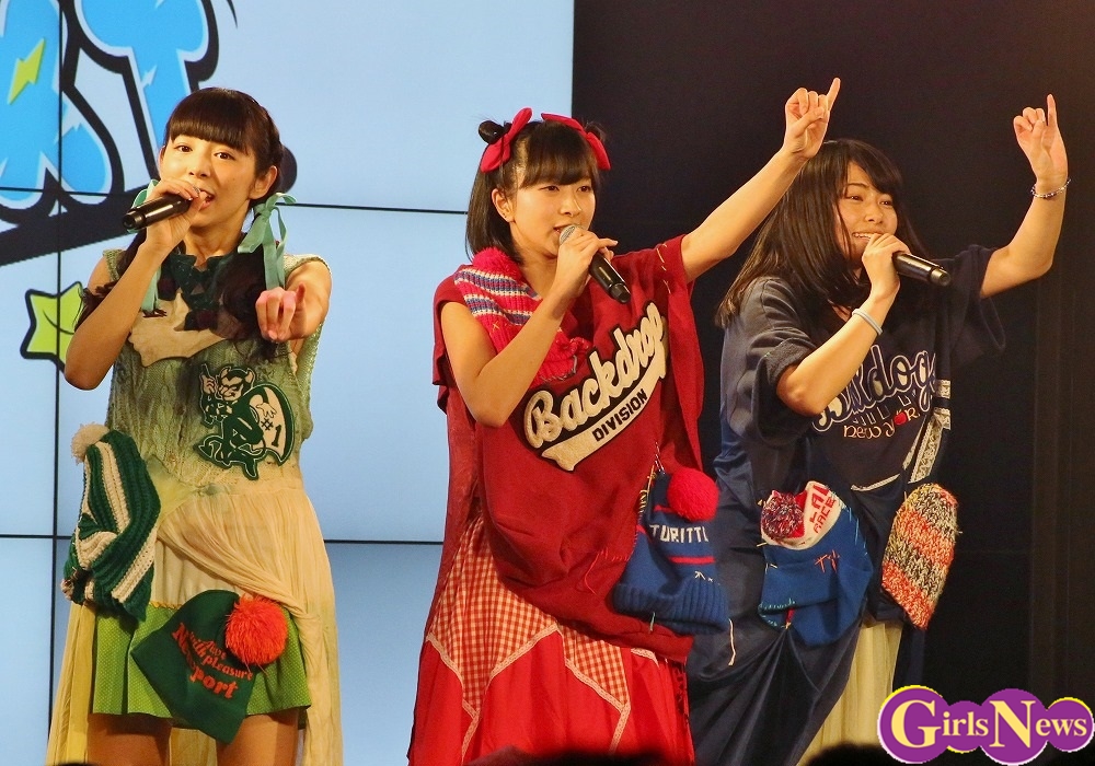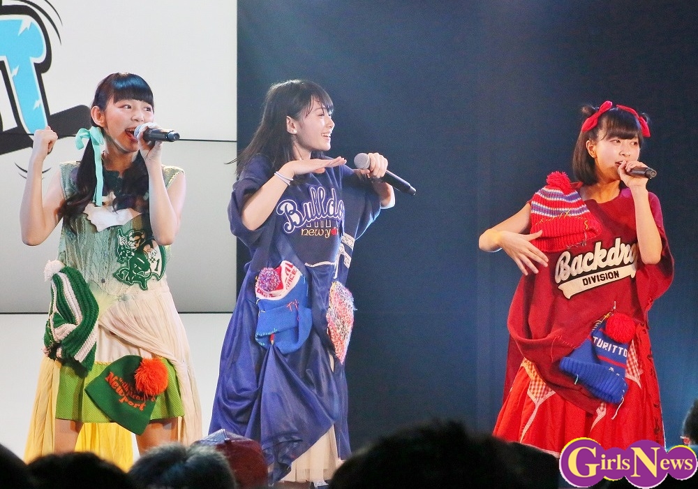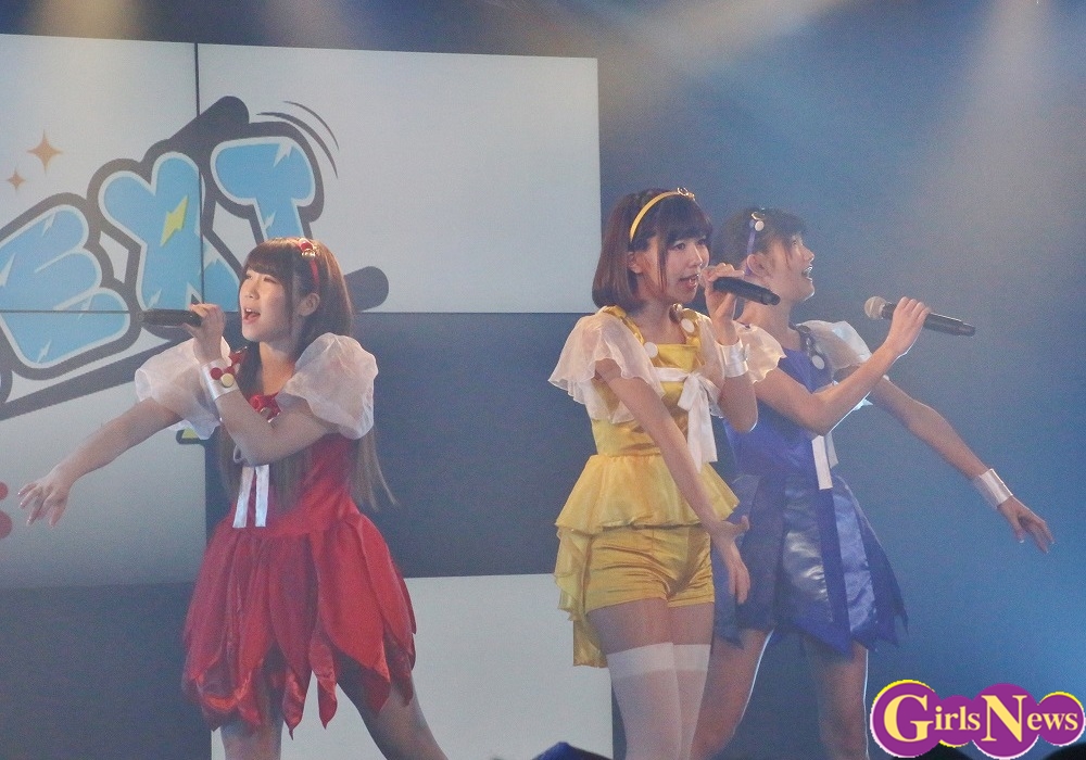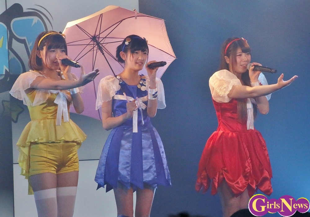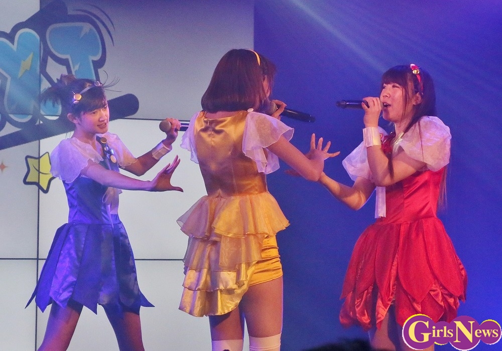 続いてdropの登場。『ビビデバビデチュ』『ロケットに乗って』『いろはにほへとでヴァンパイア』など披露し、本日出演したグループの中では3人編成と人数は少なかったが最初から最後まで舞台狭しと駆け回った。