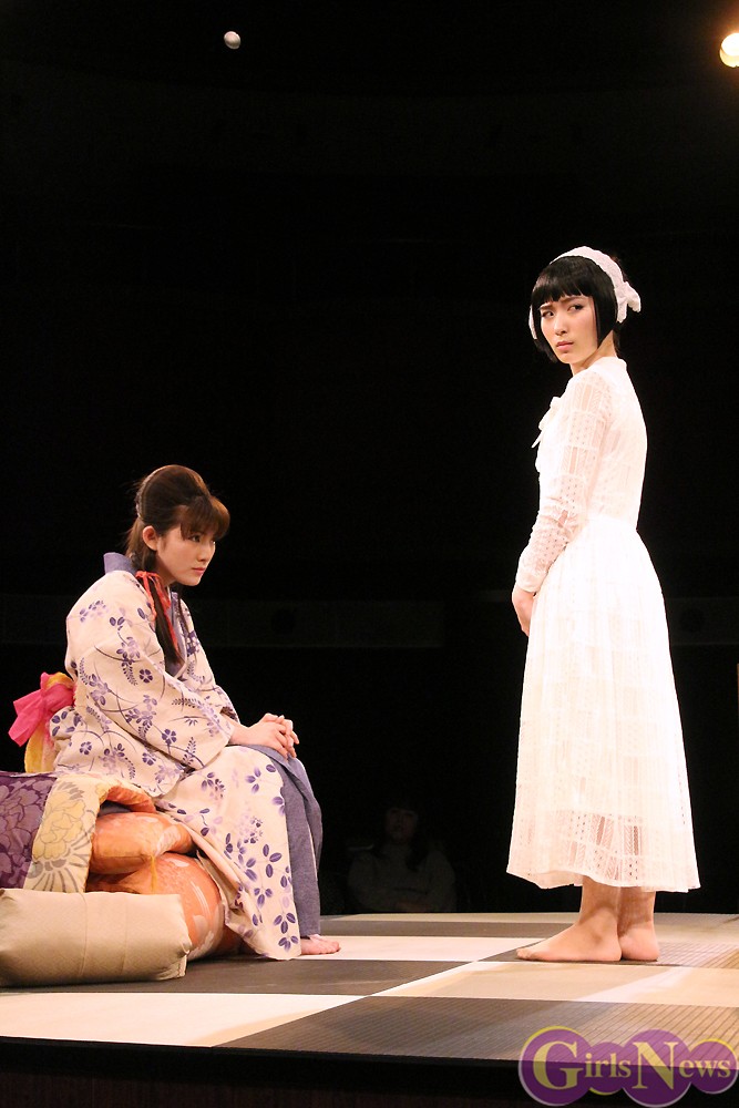 AKB48の大島涼花、岡田奈々、島田晴香、宮崎美穂が出演する舞台『絢爛とか爛漫とか』のゲネプロが8日、品川プリンスホテルクラブeXで行われ、関係者に公開された。