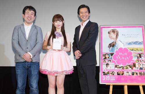 九州発アイドルグループ・LinQの初主演映画『みんな好いとうと♪』、九州9館での先行公開に続き、16日、都内近郊でも公開され、シネマート新宿で初日舞台挨拶を行った。主演の新木さくらさんは、14日に発生した「平成28年熊本地震」に対して、「大きな地震が起き、被害に遭われた皆様へ心よりお見舞い申し上げます」と話し、義援金をファンに募った。