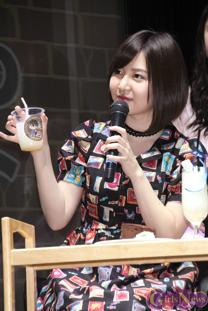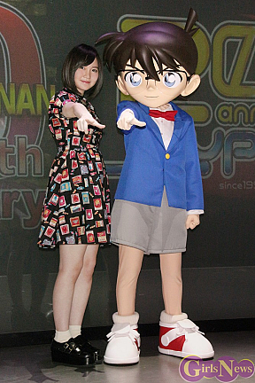 小さい頃からずっとコナンのアニメを観て育ってきたという岩田華怜さんは、コナンくんがコラボメニューを持って登場するやいなや声をあげて椅子から立ち上がって喜んだ。コナンくんに近づいた岩田さんは「意外と大きいんですね」と初対面の感想をもらして、周囲を笑わせた。