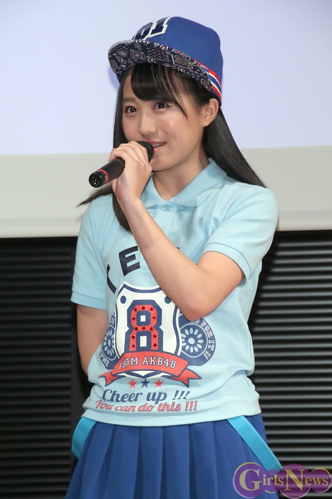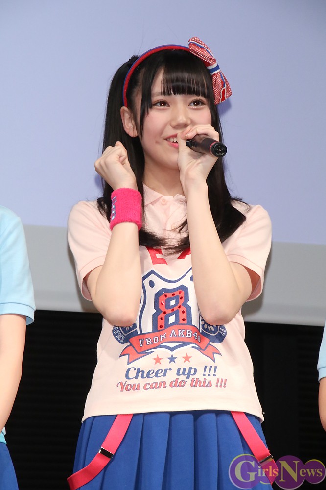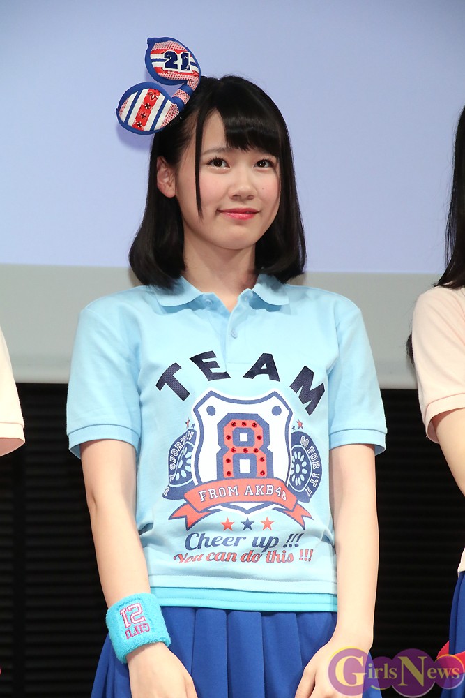 続いて、熊本代表の倉野尾成美さんは、「全国各地のイベントはもちろんのこと、全国ツアーも行っています」とTeam8の活躍ぶりを紹介した。司会から先日発表された「AKB48選抜総選挙」の速報でランクインしたことについて聞かれ、「私と坂口渚沙さんの2人がランクインできました。まだ速報なので、本番もランクイン出来るように頑張ります」と意気込みを語った。