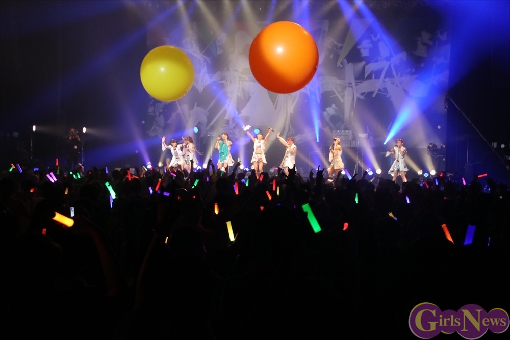 ライブの中盤からは、低音が唸るようなアプガらしいナンバーの連続で観客もさらにヒートアップしていった。パーティーチューンの「パーリーピーポーエイリアン」では、巨大な風船が次々と客席の上を舞い、メンバーと観客は一体となって盛り上がった。