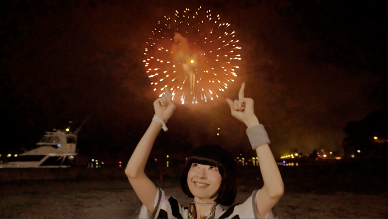 実はこの MV、兵庫県相生市で開催された「相生ペーロン祭 前夜祭会場花火大会」と同時に撮影がスタート。ダンスやサウンドと花火をシンクロさせた世界初(!?)の試みだ。