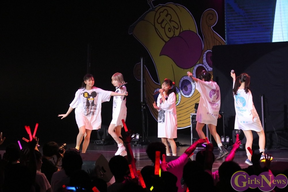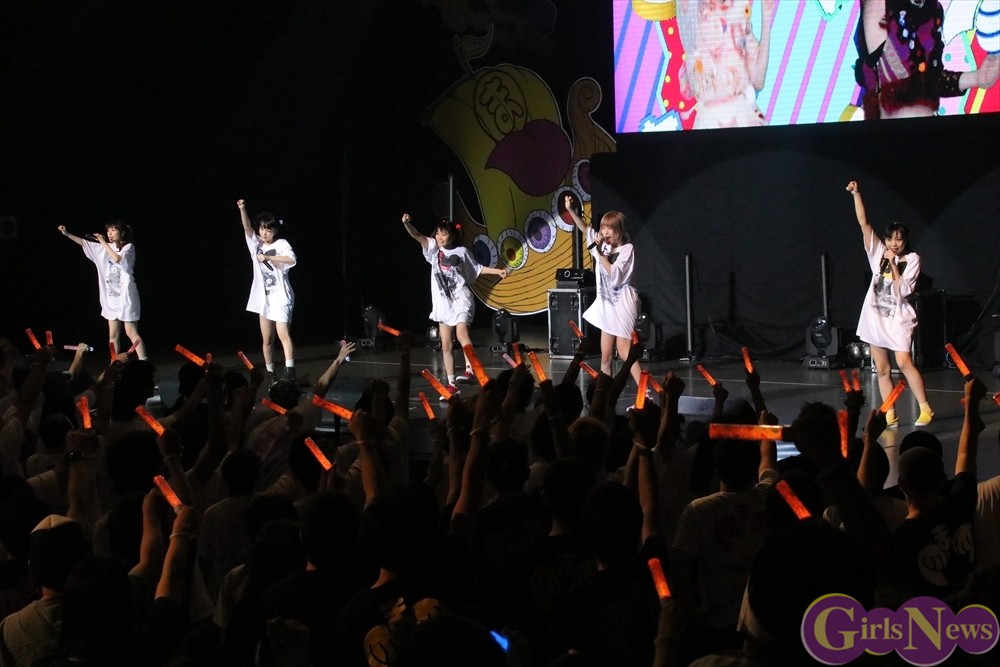 公演は、『きみわずらい』や『冗談じゃないね』などのキラーチューンや、盛夏ナンバーとなる新曲『SPLASH』など14曲を披露し、通信機能で一斉に色が変わる公式ペンライトの演出も相まって、ほぼ満員となった会場を大いに盛り上げた。