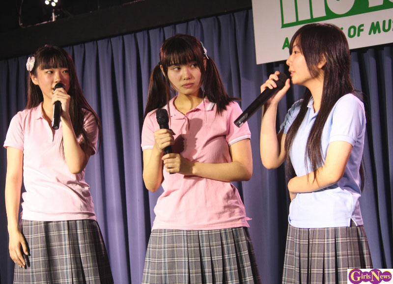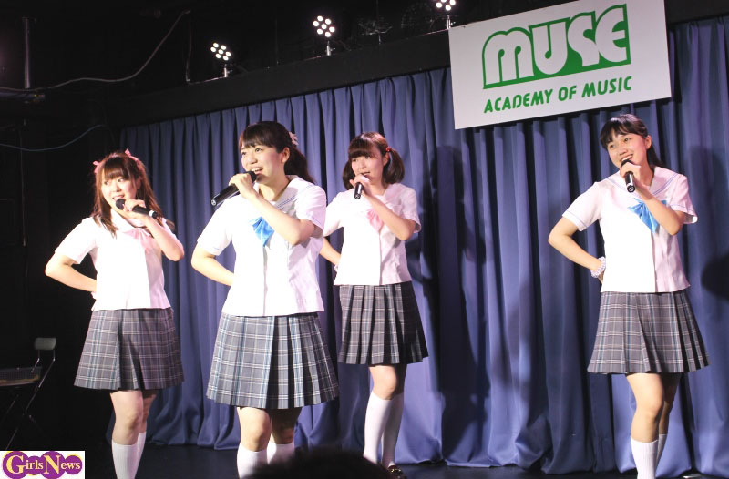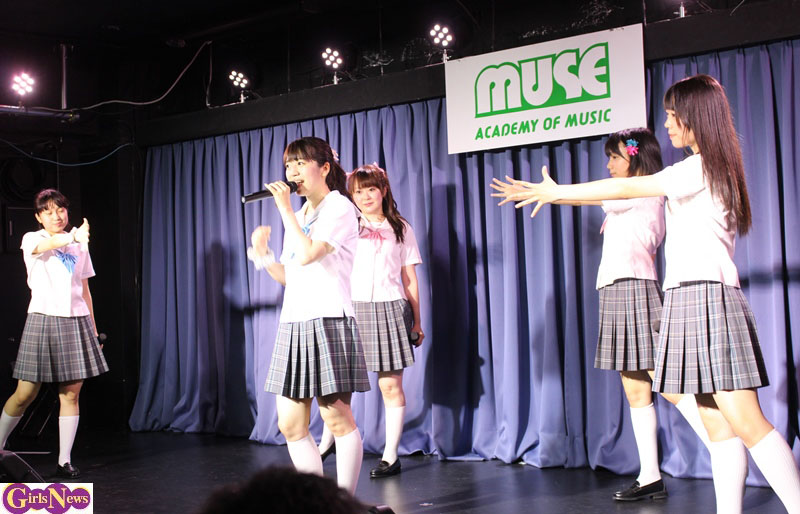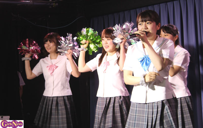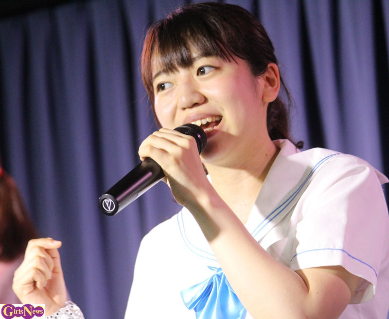 その後も、王道アイドルソング中心のセットリストで展開。MCでは最近の活動に合わせて、先日行われた参議院議員選挙に関するトークもくり広げられた。そして中盤では、中学3年生の、りあんさんはじめ3名のレッスン生のお披露目も。初々しいコメントで場内をわかせた。