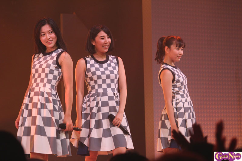 KOUMI、RUUNA、MIMORIの3人によるcallme。2014年12月に結成され、それぞれの得意分野を生かし楽曲やパフォーマンスをセルフプロデュースしている。今回のTIFのライブには、先月開催したライブツアーでお披露目されたチェック柄の新衣装で登場した3人。