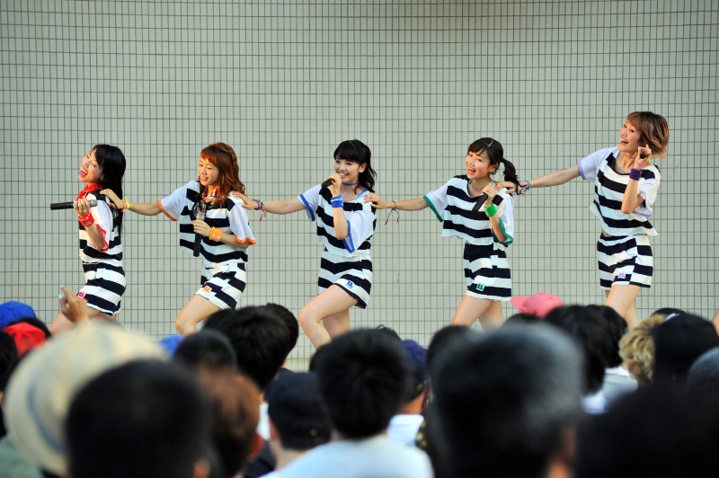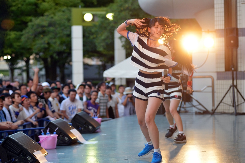 注目度が高まる中行われた初のフリーライブ。『ワンダーグラウンドremix』で幕を開け、『レインボーディスコ』『決戦はフライデー』『PARADE』など人気曲を次々と披露。メンバーのmeiさんは「お客さんスゴい数で感動!! 今日は撮影オーケーだからリリスクを可愛く撮ってね!」とオーディエンスを煽った。