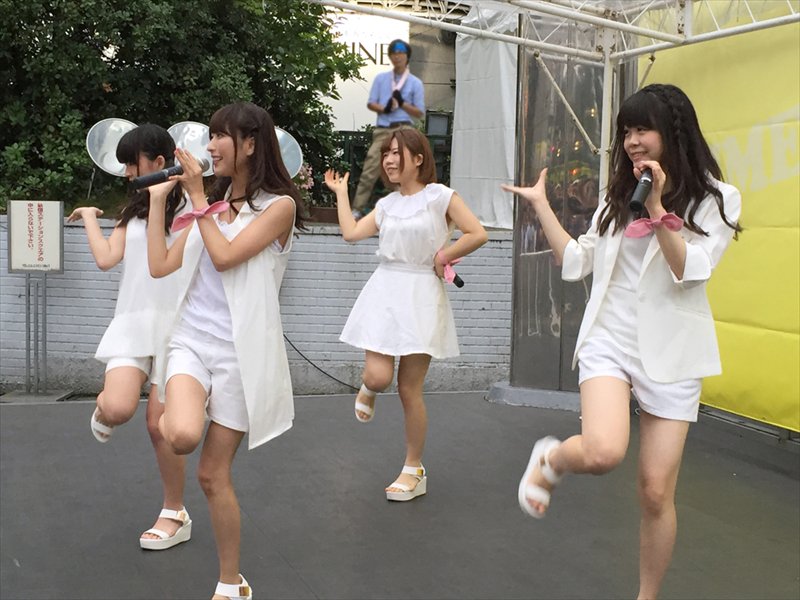 最後の1曲を残したMCでは、メンバー1の高身長という152㎝の児玉せりかさんが「雨が降ると思ったりもしたのですが、私が晴れ女で、これまでも運動会などは全て晴れです! だから今日は傘も持って来てません! 」とアピールすると、小桃音まいさんも「ご覧の通り降ってません! もう私はユニットになったので、雨女卒業です! やったー! 」と続けた。