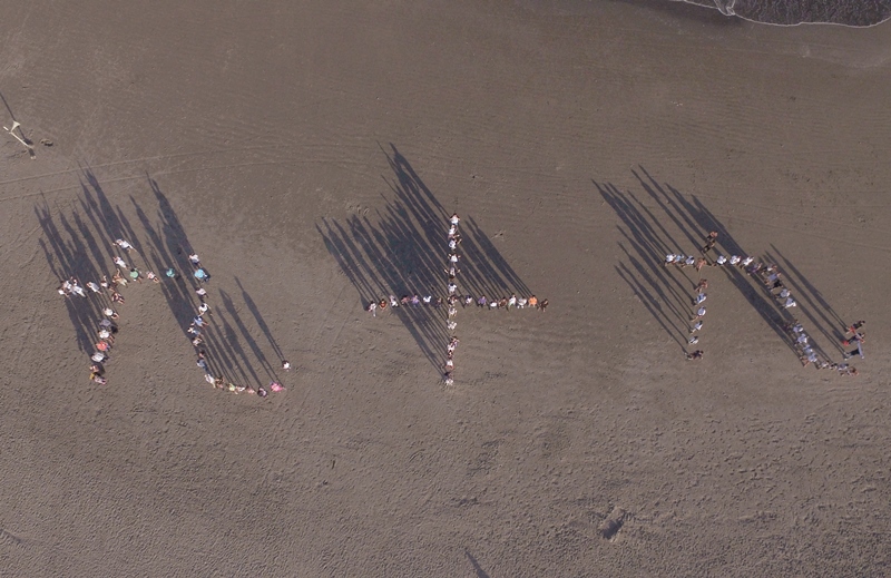 La PomPon、九十九里浜でファンと「九十九」の人文字作り ショートMV撮影