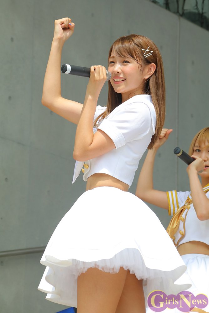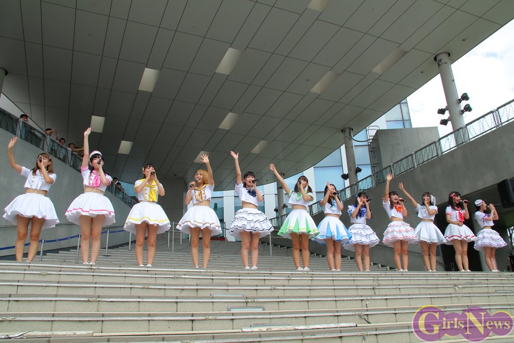 照りつける太陽に負けじと熱いパフォーマンスで『ラブサマ!!!』を披露したメンバーたちに、集まったファンたちも熱い声援で応えた。
