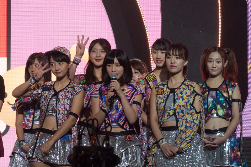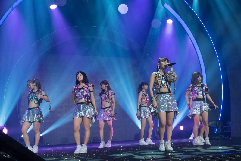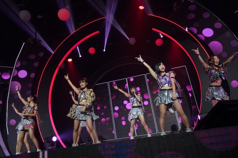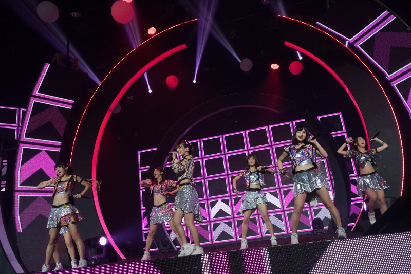 そして、佐藤綾乃さんが「私たちは、このグループに憧れて、アイドルになりました」と語り、先輩グループ、モーニング娘。の大ヒット曲『LOVE マシーン』を披露。会場はさらにヒートアップした。続けて、超パーティーチューン『パーリーピーポーエイリアン』を歌唱する。歌い出しで佐保明梨さんは、中国語で語りを入れつつも日本語で“大好き!”と声を上げる。観客から歓声が沸き起こり、そのまま勢いを上げていった。続けて『美女の野獣』『セブン☆ピース』といった盛り上がり曲を披露し、ライブを締めくくった。