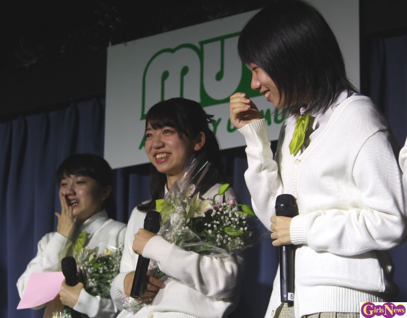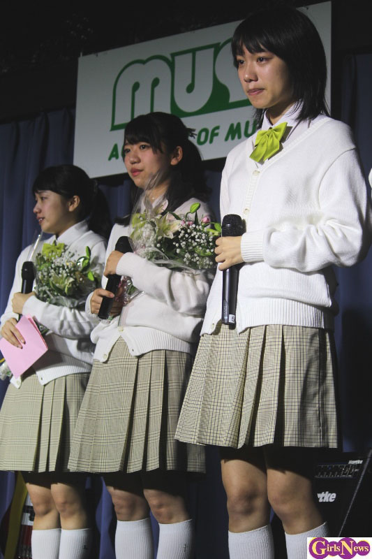 後任には、11代目リーダーとして野見山杏里さんが任命された。感激と不安が入り混じったような表情で、「杏奈さんや花梨さんのようにできる自信はまだないですが、頑張っていきたいと思いますので、みなさんやさしく応援してください」と語りかけた。卒業する先輩を思う気持ちからか終始涙ぐむ野見山さんだった。