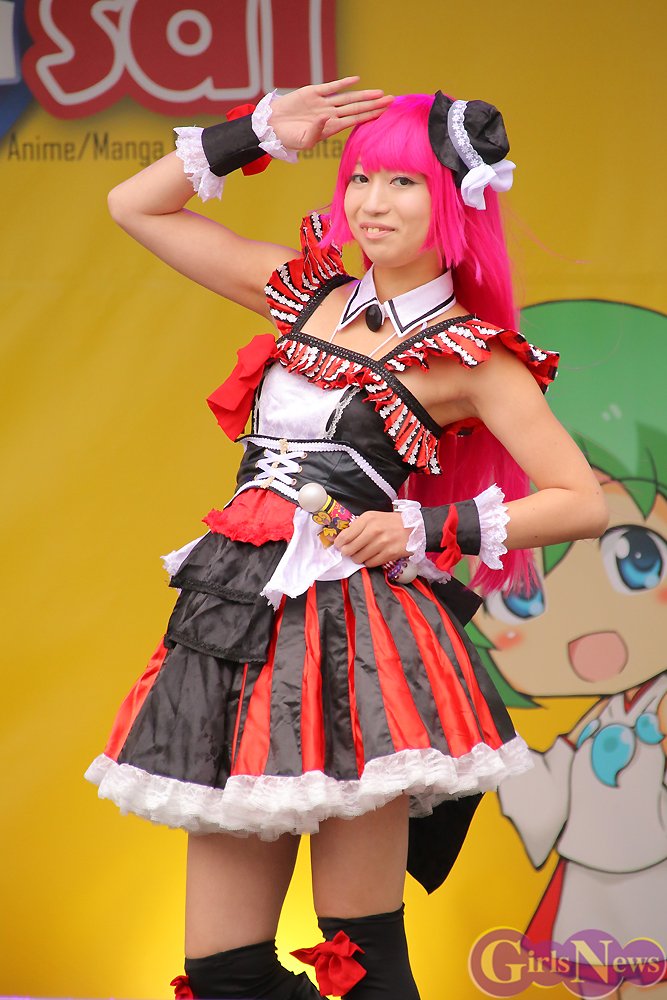 屋外ステージでは、アイドルや声優によるミニライブなどが行われ、TVアニメ『鬼斬』の主題歌を歌うSTARMARIEは、風にスカートを翻しながら激しいパフォーマンスで観客を盛り上げていた。夜には大ホールで、でんぱ組.incのコンサートも開催され、多くのファンで大盛況だった。