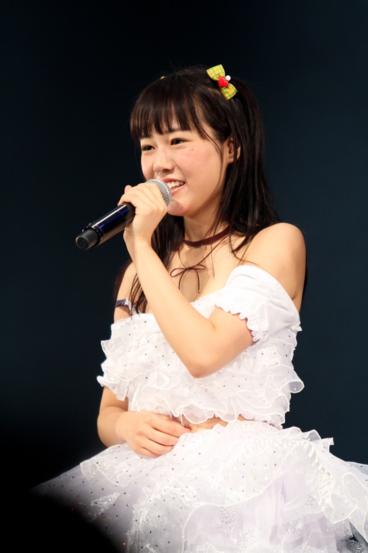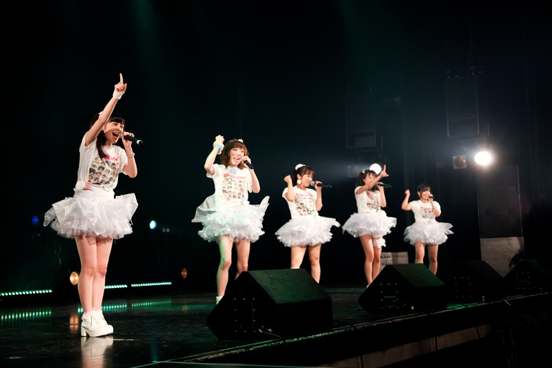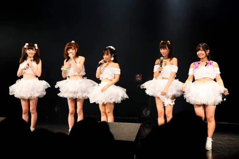 暗転の中、純白の新衣装に身をつつんだメンバーが登場し、新曲『キミと作る物語』を披露。この曲は周りの大切な人に捧げる曲で、「会場のみなさんのことを思って歌いました」とメンバーは思いを語った。