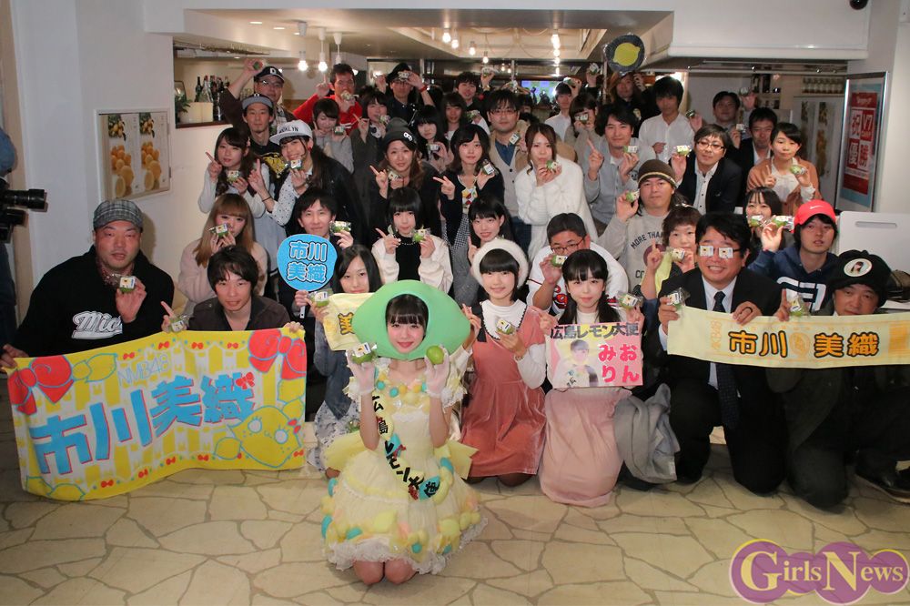 2014年に広島レモン大使に就任した市川さんは、「埼玉県出身の私が“何で?”と思う方が多いと思いますが、念ずれば通じるです。もっと広島県のレモンをPRしたいです」と気合い十分。この日はお馴染みの黄色いレモンのかぶり物ではなく「旬」のグリーンレモンのかぶり物を着けて登場し、広島レモンに関する豆知識や、レモンケーキなどを紹介し、集まったファンのひとりひとりに広島レモンを手渡しでプレゼントして、楽しくアピールをした。