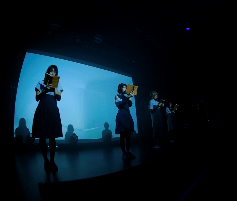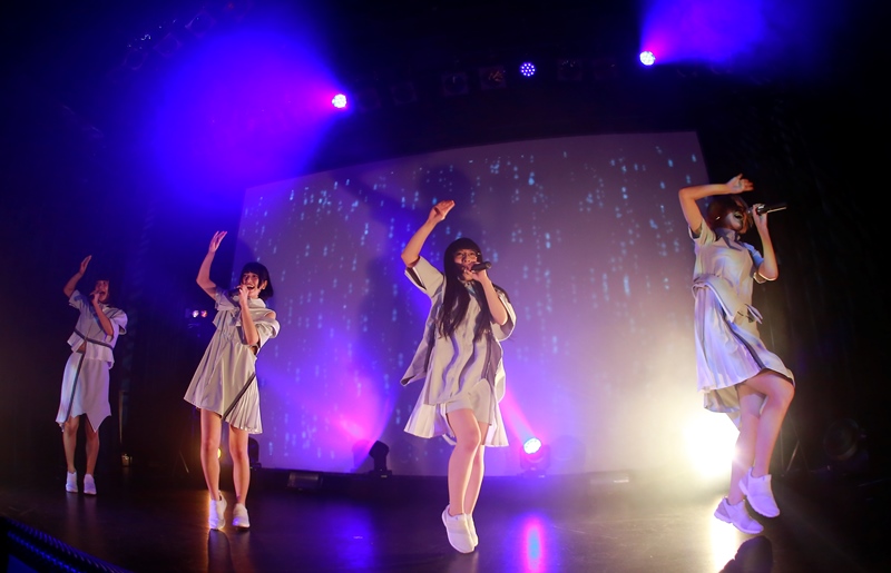 終盤、『14days』でメンバーたちによるポエトリーリーディングの音声が無人のステージ上で鳴り響く。そして、衣装を着替えた4人が再登場し、手にしたノートを開きながら『empty』を披露。順番に詩を朗読しながら、白い箱をモチーフにした幻想的な物語を読み上げていく。このポエトリーリーディングの2曲の詩を手がけたのは、メンバーのコショージメグミさん。想像力をくすぐる描写、心地よい言葉の響きに満ちた彼女の詩の魅力を実感できるひとときとなった。