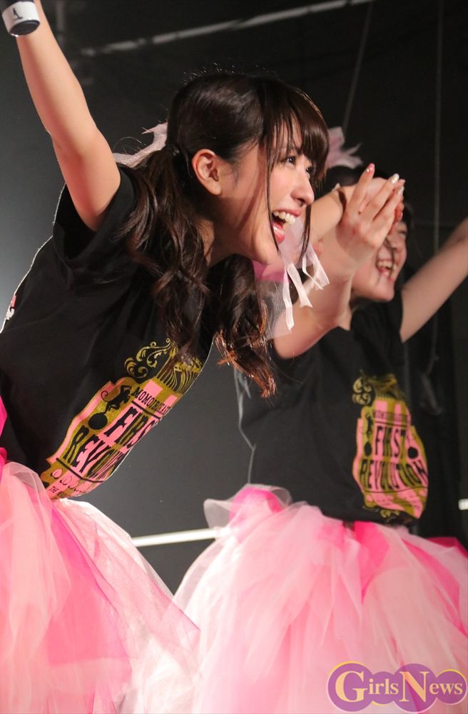 そして、ライブは早くもラストスパートに突入し、おまちかねの新曲『キメるぜ!マッチョでムーチョ!』、そして小桃音まいのカバーで『Oh,my Sunny Day!! 』、『Winkも届かない』と続き、お猿さんのような振付が楽しい『満開REVOLUTION』とテンション上げっぱなしの曲を連続して突っ走った。
