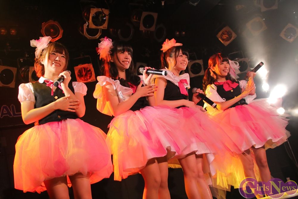 ライブは、10月25日に発売されたデビュー曲『きゃらめるめりー☆』からスタート。1曲目からお客さんのテンションはMAXで、会場中にコールが響き渡った。続いて『White Loop』、『✠sIsTeR✠』と続けざまに3曲を披露された。初披露の新衣装もこれまでの白一色のものから、カラフルなふわふわスカートのアイドルらしいものに昇格して、メンバーたちのテンションもさらに高くなっていたようだ。