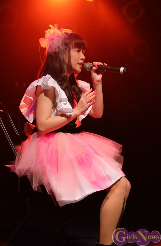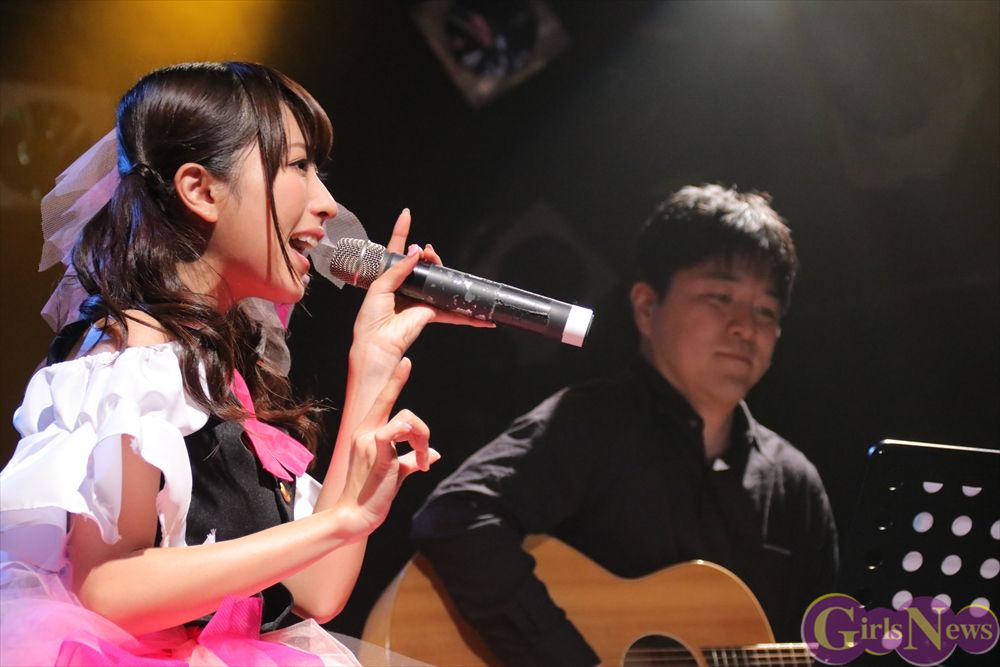 ソロ活動休止ライブ以来、久々に一人で歌う小桃音まいさんは「ソロって緊張するね~。心臓がバクバクする。自分、すごかったんだなと思いました」とそわそわした様子で話した。奥山アキラさんをアコースティックギターに迎え、小桃音さん自身のナンバー『ラグランジュ☆ポイント』を披露すると、ファンは優しく手拍子をしながら聞き入っていた。