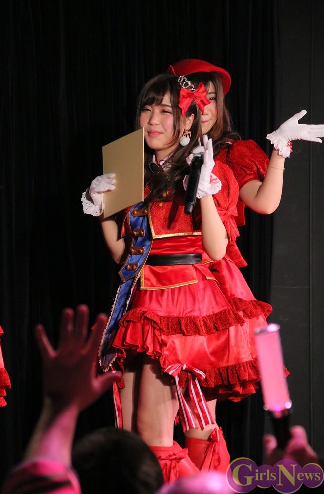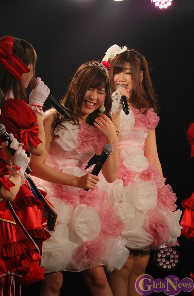 ライブが一段落つき、ついに最後のMCとなって、二人と同じ8期生のナナは「ずっと我慢していたけど、さっき新曲を歌っていたら、もう10人になるんだと思って寂しくなっちゃって」と別れを惜しんで涙ぐんだ。