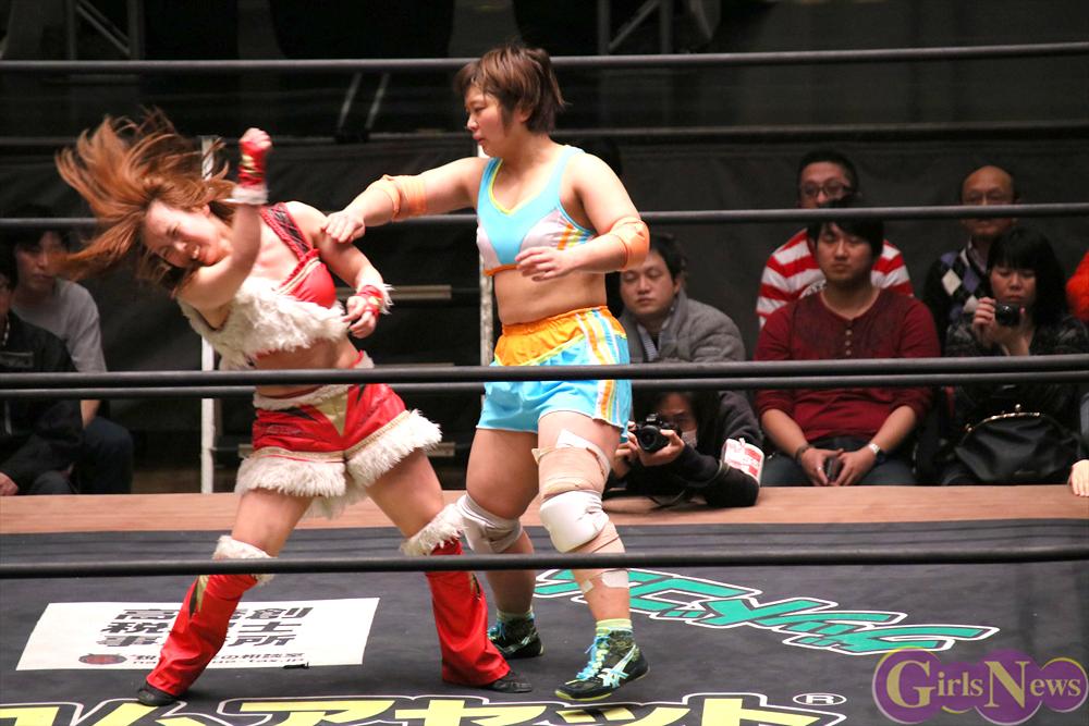 多彩なキャラクターのレスラーが顔を揃える同団体は、昨年12月11日の福岡興行で伊藤麻希さんがプロレスデビュー戦を行い、アイドルファンからも俄然注目を集めている。もともと、アイドルとプロレスのファンは親和性が高いと言われてきたが、力と美しさを兼ね揃えた魅力的な選手が増えたことで、ファンの裾野が広がっている印象だ。AKB48グループのメンバーが多数出演するドラマ『豆腐プロレス』(テレビ朝日系)も話題となり、女子プロレスの人気に追い風となっている。