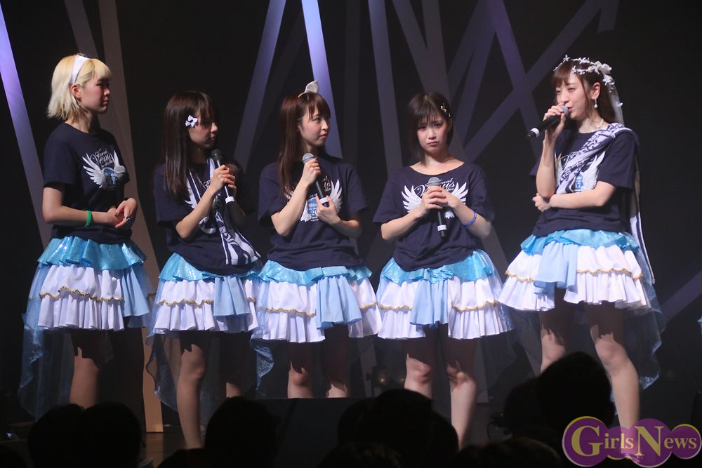 マホから話を引き継いだユカフィンは、意気揚々と舞台端のお立ち台に登り、「1部で大っきなワンマンライブがあると言いましたよねー!」と明るい声で先輩たち(ファン)に呼びかけた。吉報を期待する先輩たちに、ユカフィンはそのままの勢いで「6月、私の卒業ライブでーす!」と言い放った。
