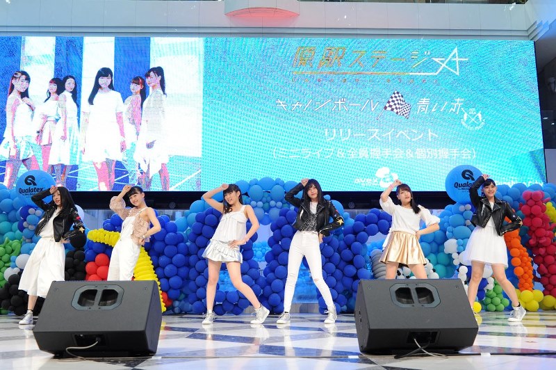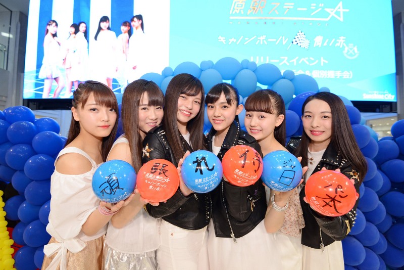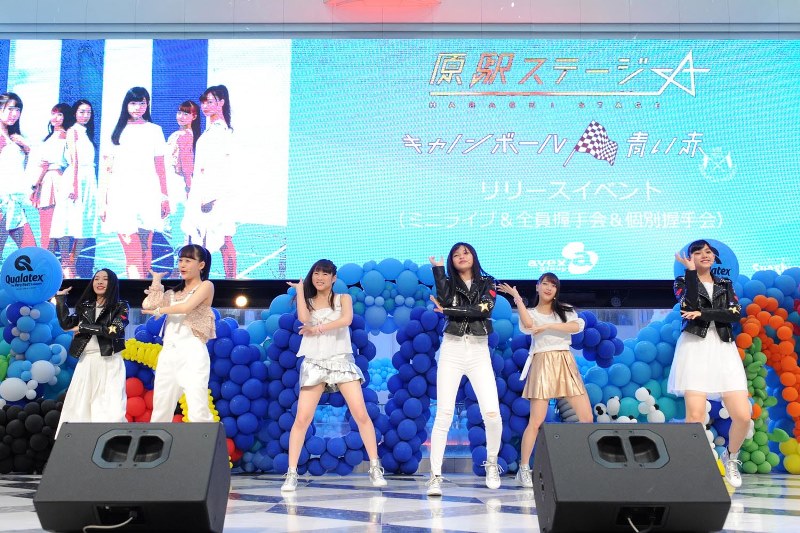 CD発売までのこの1年間、原宿駅の目の前にある原宿駅前ステージで200回以上もの公演を行い、パフォーマンスに磨きをかけ続けてきた。そんな彼女達を応援し支え続けてくれたファンに向けて、この日は、新曲タイトルのにちなんで、感謝の想いをつづった青色と赤色のボールを用意。