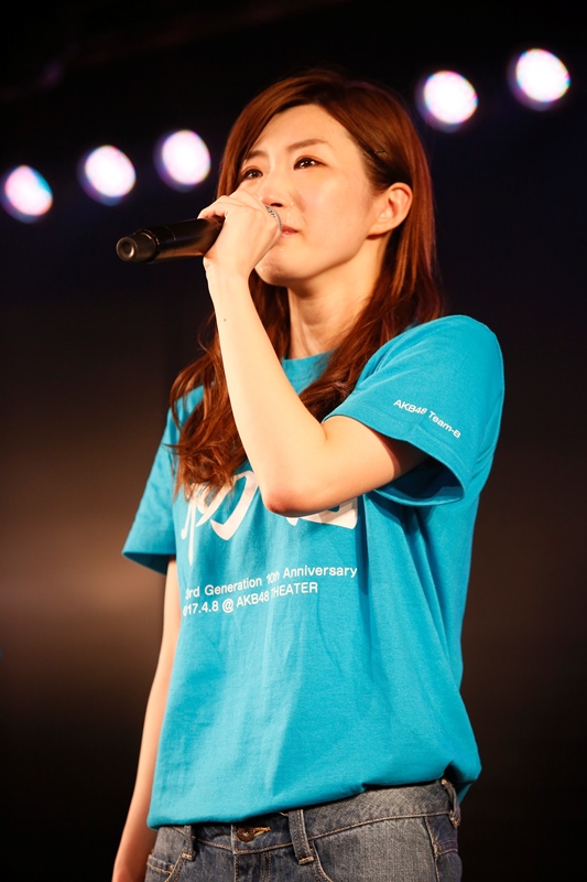 「1年くらい前からこの10周年の日に、大好きなメンバーに見守られながら発表したいと一生懸命頑張ってきました。立派な同期の中、私はあまり日の目を見ない10年間だったんですが、去年はじゃんけん大会で優勝させていただき、自分の拳でてっぺんを取りました。自分の目標や夢をかなえるため、卒業生のみんなにも勇気をもらったし、大好きな大好きなメンバーの前で発表したかったので、今日この場を借りて発表できたことが本当に幸せです。残りのAKB48人生も精一杯私らしく突き進みたいと思います。これからも3期生と田名部生来の応援よろしくお願いいたします」と涙ながらに一生懸命思いを伝えた。